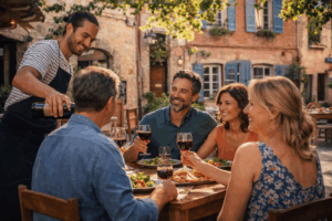 Lunch can stretch on longer than you expected. Conversations wander. Another glass of wine appears. No one seems to be watching the clock.