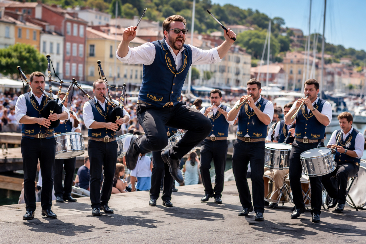 If you’ve ever watched a Breton bagad perform—like the Bagad de Lannion at the Escale in Port-Vendres—you may have noticed something unusual: the conductor doesn’t just keep time. He leaps, bounces, and throws his whole body into the music.